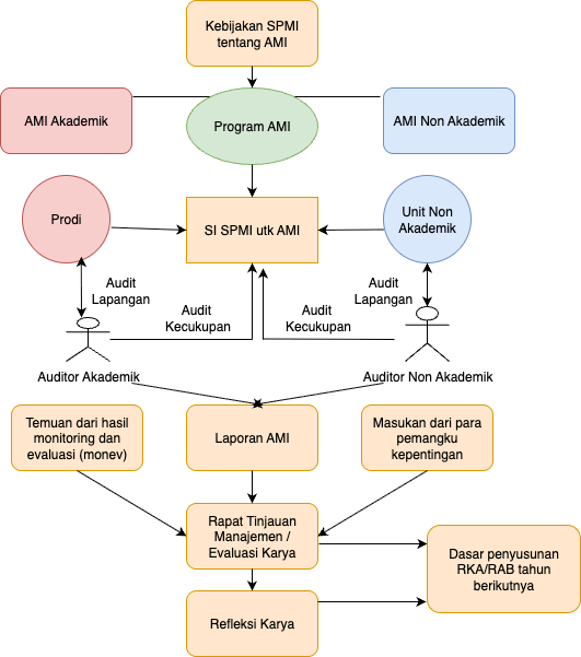 AMI (Audit Mutu Internal) adalah salah satu cara evaluasi yang dilakukan untuk memperoleh ruang peningkatan mutu pendidikan tinggi. AMI adalah salah satu mekanisme yang diwajibkan untuk diberlakukan di semua perguruan tinggi (Permenristekdikti No. 62 Tahun 2016). Mekanisme jadwal dan strategi dikembangkan oleh perguruan tinggi terkait. Cara evaluasi melalui AMI perlu dilakukan secara sistematis sesuai dengan amanat UU Nomor 12 Tahun 2012 tentang Pendidikan Tinggi.