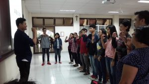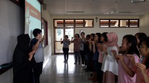 Acara yang berlangsung dari pukul 11.00 – 14.00 WIB ini berlangsung dengan baik dengan menu diskusi diselingi dengan permainan yang melibatkan seluruh peserta. Permainan ini dibuka dengan sesi perkenalan singkat menggunkan bahasa Inggris antar peserta secara bergantian untuk saling mengakrabkan dan saling berbagi. Kemudian, peserta dibagi menjadi dua kelompok besar tanpa memandang suku dan budaya. Permainan komunikata ini mengharuskan peserta saling memberikan pesan yang didapat dari kalimat yang diucapkan oleh orang pertama yang mendapat pesan. Dalam permainan ini terdapat peserta yang memiliki ranjau huruf yang diperolehnya, dan jika peserta tersebut mendapat salah satu huruf maka dalam pengucapan kalimat yang ingin dia sampaikan harus menghilangkan atau menyamarkan huruf yang terdapat dalam kalimat sesuai dengan ranjau huruf yang diperoleh masing-masing peserta. Permainan yang sarat akan makna ini mengajarkan banyak hal seperti bagaimana memahami apa yang diutarakan orang lain, menyampaikan pesan dengan baik meskipun terdapat rintangan, serta bagaimana berkolaborasi antar teman dengan baik.