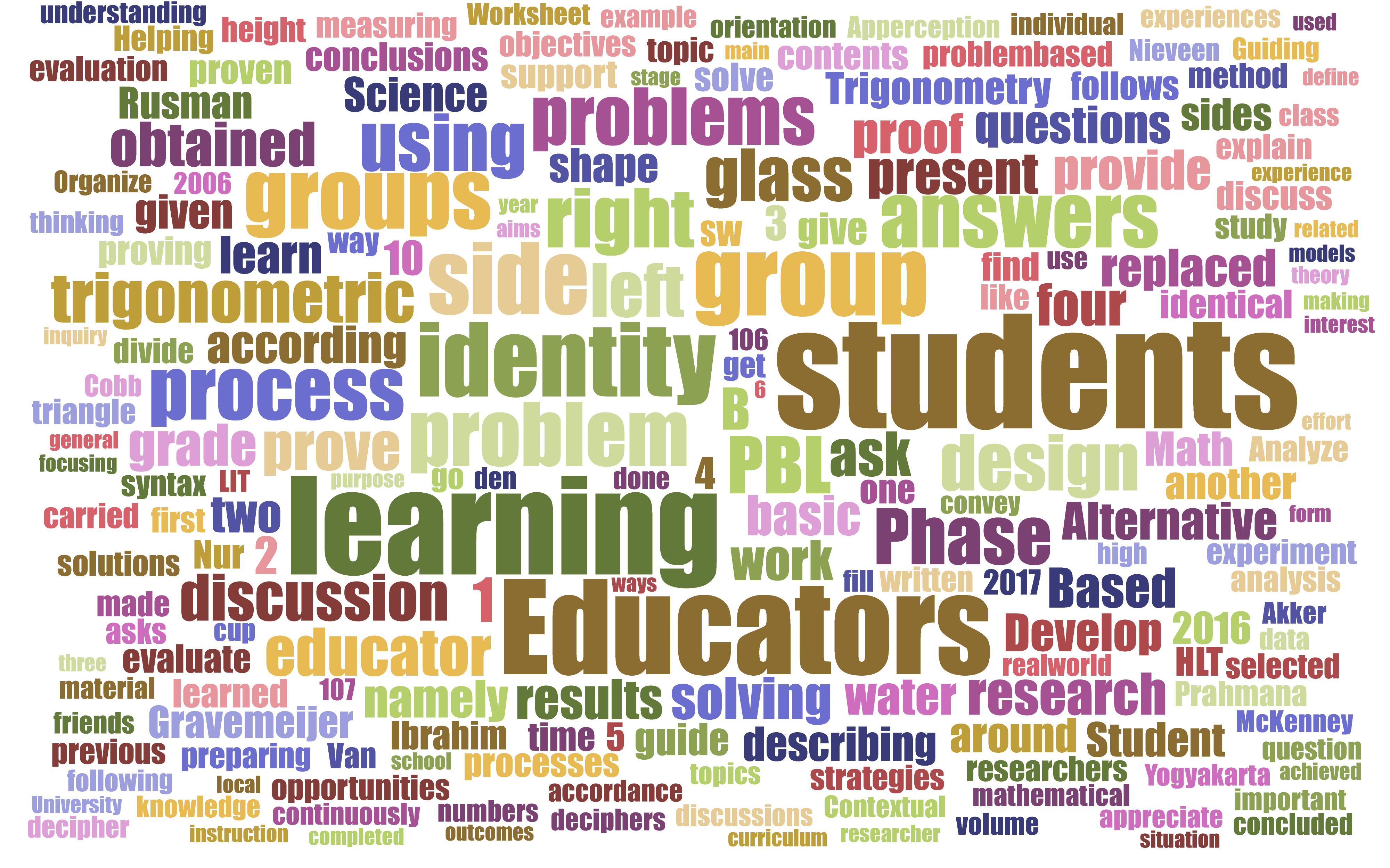 Abstract. This study aims to develop the design of learning proof of identity trigonometry in grade 10 Math and Science using PBL. Learning design is compiled using design research according to Gravemeijer & Cobb (in Akker, Gravemeijer, McKenney, and Nieveen, 2006), focusing on the first stage, namely: preparing for the experiment. The results of the study were in the form of a trigonometric identity proof learning design using PBL which had been tested on 33 Math and Science students of grade 10 in one of the private high schools in Yogyakarta. The learning process is adjusted to the syntax of PBL according to Ibrahim and Nur (Rusman, 2016). Phase 1: Orientation of students to the problem. Educators convey material topics, apperception, and explain in general the processes that will be experienced by students. Phase 2: Organize students to learn. Educators divide students into groups to work on Student Worksheet 1. Phase 3: Guiding individual or group experiences. Educators go around to each group to provide support in solving problems. Phase 4: Develop and present the work. Educators ask students to collect Student Worksheet 1 answers and then ask two students to present their group answers in front of the class. Phase 5: Analyze and evaluate the problem solving process. Educators guide the analysis and evaluation process in accordance with the learning objectives to be achieved.